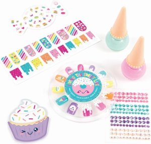 Odhaľ tajomstvo krásne nalakovaných nechtov! Laky na nechty so samolepkami, umelými nechtami a ozdobnými kamienkami, vďaka ktorým budú vaše nechty ešte krajšie. Balenie obsahuje: 2 laky na nechty v tvare zmrzliny s vôňou vanilky, pilník na nechty, 12 ks umelých nechtov s vôňou vanilky, 1 hárok s drobnými nálepkami na nechty, 1 hárok kamienkov na nechty, 1 hárok fólií. Vhodné pre deti od 8 rokov.