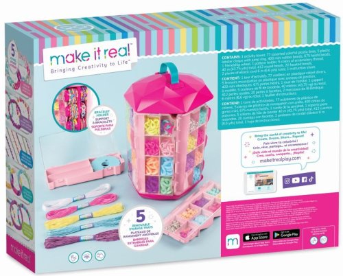 Veľký set 5v1 na výrobu náramkov je ideálnym darčekom pre každú šikovnú slečnu. Balenie obsahuje všetko potrebné na kreatívnu tvorbu náramkov - celkom 1600 kusov komponentov. Komponenty sú uložené v krabičkách s prepážkami podľa druhu náramku. Vyrábaním náramkov sa zdokonaľuje jemná motorika prstov, kreativita a malé šikulky sa na dlhú dobu zabavia. Vhodné pre dievčatá od 6 rokov.