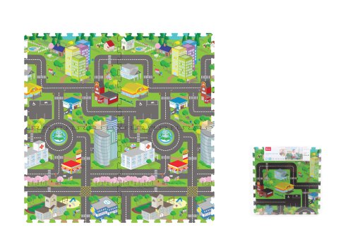 Postavte deťom mesto v podobe penového koberca - puzzle o veľkosti 118 x 118cm. Deti si užijú veľa zábavy a navyše na bezpečnom mäkkom mieste. Eva foam, z ktorej sú vyrobené je nezávadná a plne umývateľná
