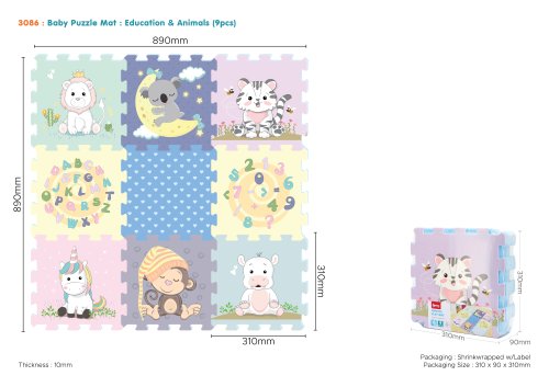 Mäkké bloky so zvieratkami náučné. Rozmery 1 časti 31x31 cm. Balenie obsahuje 9 ks. Rozmery pri zostavení do štvorca, 89x89 cm.