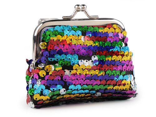 Malú peňaženku s meniacimi flitrami si zamilujú malé aj veľké slečny. Dômyselne našité flitre umožňujú meniť ich farbu jednoduchým pohladením, čím dokážu zmeniť aj samotný vzhľad peňaženky. Hodí sa na drobné mince a kľúče, môžete do nej ukryť aj bankovky alebo dekoratívnu kozmetiku. Má kvalitný kovový roztvárací rámček so zapínaním.