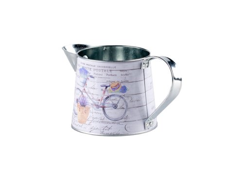 Plechová kanva s motívom bicykla vo farebnej farbe, ideálna pre záhradné a vonkajšie dekorácie. Jej rozmery sú 185x115x105mm.