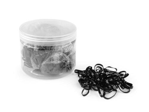 Súprava malých silikónových gumičiek sa hodí vždy. Či už vytvárate zložité účesy z veľkého množstva vrkôčikov alebo češete malé dievčatá s jemnými vláskami, malé gumičky oceníte. Sú pružné, využijete ich aj bežne v domácnosti. Dodávame ich v plastovej dóze so skrutkovacím uzáverom. Vnútorný priemer voľne položenej gumičky je cca 2 cm, maximálna dĺžka obvodu po roztiahnutí je 24 cm. V jednej dóze je cca 500 ks gumičiek. Gumičky môžete používať aj bežne v domácnosti, napríklad na previazanie sáčkov, stuh a pod.