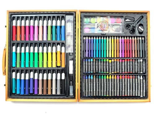 Maliarsky kufrík drevený predstavuje komplexnú kreatívnu sadu, ktorá obsahuje celkom 150 kusov výtvarných potrieb. Tento praktický drevený kufrík je navrhnutý tak, aby vyhovel potrebám malých aj väčších umelcov a umožnil im maľovanie, kreslenie, strihanie aj lepenie na jednom mieste. Kufrík má pevné drevené prevedenie s úchytom pre ľahké prenášanie, čo z neho robí ideálneho spoločníka doma, v škole aj na cestách.