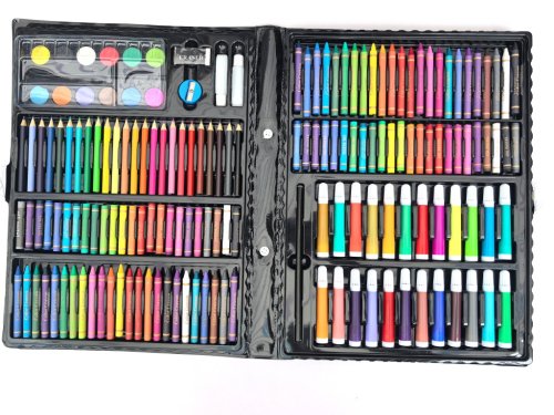 Set obsahuje celkom 168 kusov kreatívnych nástrojov, medzi ktorými je 48 olejových pasteliek a 24 fixiek v pestrých farbách. Ďalej je súčasťou 24 mini farebných ceruziek a 12 akvarelových farieb, ktoré sú umiestnené v plastovej palete pre ľahké miešanie a nanášanie. V kufríku nechýbajú ani základné výtvarné pomôcky ako je guma, lepidlo, ceruzka a strúhadlo, rovnako ako 6 plastových sponiek pre lepšiu organizáciu papierov alebo obrázkov.