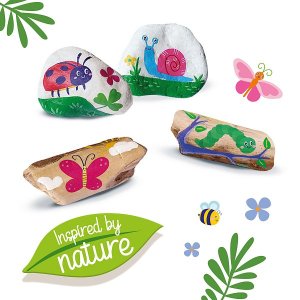 Maľovanie kamienkov a naplavených drôtov – vytvorte si vlastné prírodné umelecké diela. Táto kreatívna sada, inšpirovaná prírodou, obsahuje všetko, čo potrebujete na zdobenie kameňov a skôrk farbami. Ideálne pre kreatívne deti, ktoré rady tvoria z prírodných materiálov. Obsah sady: 3 biele kamene, zmes naplaveného dreva, 6 farbičiek, štetec, samolepky a návod. Podporuje rozvoj detskej fantázie, jemnej motoriky a zmyslu pre umenie. Balené v krabičke. Rozmery balenia: 20 x 20 x 4 cm. Nevhodné pre deti do 3 rokov. Vek: 5+