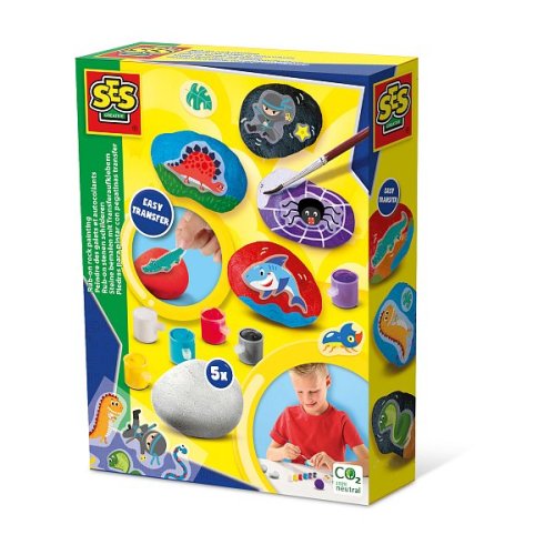 Maľovanie kamienkov s rôznymi nálepkami! Namaľujte si kamienky vo svojich obľúbených farbách a polepte si ich samolepkami napríklad s pavúkmi, dinosaurami, žralokmi a iné. Balenie obsahuje 5 bielych kameňov, 6 farieb a samolepky. Rozmer balenia: 15x20x4cm. Vek: 5+