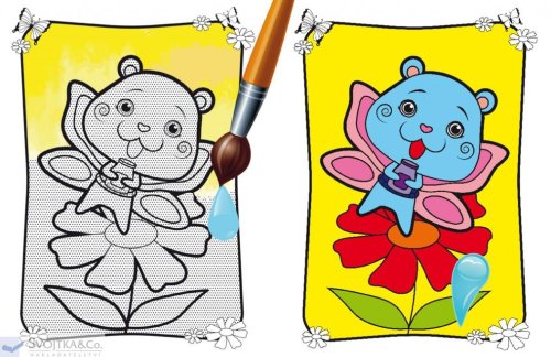 Na tieto kúzelné omaľovánky nepotrebuješ farby ani pastelky. Vezmi si pohár vody a mokrým štetcom prejdi cez šedé bodky. Obrázok sa magicky vyfarbí. Naučíš sa správne držať štetec a spoznávať farby. Na tieto kúzelné omaľovánky nepotrebuješ farby ani pastelky. Vezmi si pohár vody a mokrým štetcom prejdi cez šedé bodky. Obrázok sa magicky vyfarbí.