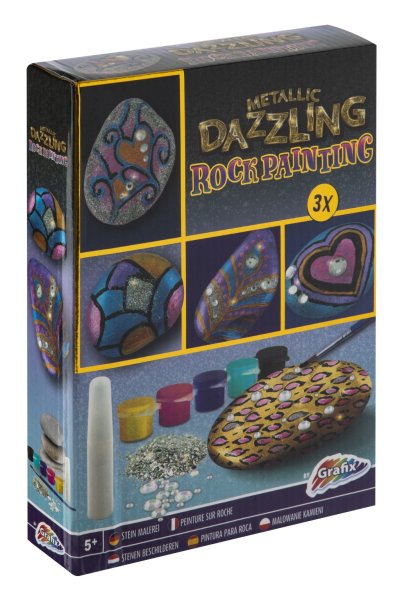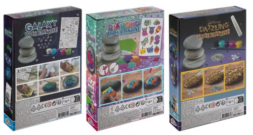 Maľovanie na kamienky tri rôzne druhy v assore diamond, galaxy, metalic – namaľuj si svoje kamienky farbami. Balenie obsahuje 6 farieb metalických/galaxy/alebo kamienky a samolepky.