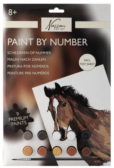 Maľovanie podľa čísel na kartón – kôň. Veľkosť obrázku 33,5×23,8 cm.