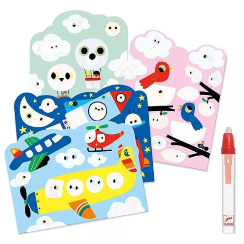 Nikdy nekončiaca zábava bude deti baviť a zamestná ich na dlhých aj krátkych cestách. Po vyschnutí sa opäť obrázok opäť zahalí do bielej, nepriehľadnej farby a deti môžu znova, odkrývať . Sada je zabalená v praktickom obale so zapínaním, aby sa aj na cestách nič nestratilo a deti mohli cez priehľadný obal pozorovať postupne meniaci sa obrázok., Sada vodných omaľovánok DJECO obsahuje:, * 4 obrázky, * magickú ceruzku, * handričku