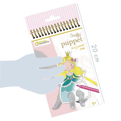 Maľovanky Avenue Mandarine Graffy Puppet s motívmi princezien. Omaľovánky vopred pripravené a upravené na následné použitie ako prstové bábky, stačí ich vyfarbiť a hrať sa. Omaľovánky obsahujú 24 listov, 12 motívov po 2 ks, krúžková väzba. Možno použiť na techniky: pastelky, fixky, akvarel atď. Gramáž 250 g. Vhodné pre deti už od 5 rokov,, Rozmery 10 x 20 cm