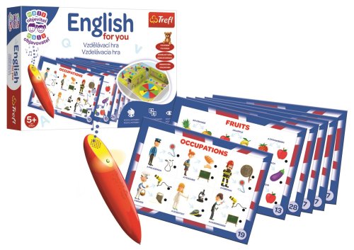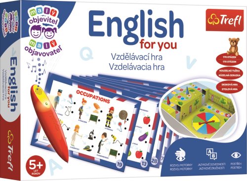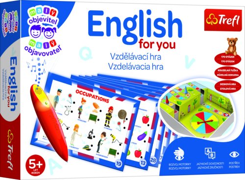 Veselá hra pre deti s kúzelným perom! Vzdelávacia hra z edície hier pre najmenších Malý objaviteľ . Deti sa učia základnú anglickú slovnú zásobu. Pomocou tematických kariet sa deti učia a upevňujú si znalosť jednotlivých slovíčok. Prostredníctvom hier a hádaniek, ktoré v tejto sade nájdete, môžu deti urobiť prvé krôčiky v učení cudzieho jazyka. Vďaka farebným ilustráciám a zábavným úlohám si deti túto hru obľúbia. Súčasťou balenia je aj magické pero, ktoré po zvolení správnej odpovede vydá zvukový signál. Úlohy na hracej doske zahŕňajú rôzne témy z oblasti jazykového vzdelávania na predškolskom a prvom školskom stupni.: - základná slovná zásoba - jazykové hádanky - zábavné učenie - logické úlohy Balenie obsahuje batériou napájanú kúzelnú ceruzku, 16 obojstranných kariet s úlohami, hracia doska na kartónovej vložke v krabici, žrebovacia šípka, 4 figúrky a návod k hre. Odporúčané pre deti od 5 rokov. Kolekcia hier Malý objaviteľ je určená pre deti vo veku od 2 do 6 rokov. Každá hra bola navrhnutá tak, aby podporovala poznávací a intelektuálny rozvoj detí. Rozvíja logicko-matematické myslenie, stimuluje komunikačné schopnosti a obohacuje slovnú zásobu. Cvičí vyzuálnepohybovú koordináciu, trénuje pamäť a sústredenie, a povzbudzuje predstavivosť a kreativitu. Hry z kolekcie Malý objaviteľ v sebe snúbi zábavu a učenie a možnosti tvorivého trávenia voľného času s dieťaťom.