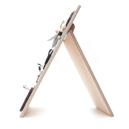 Drevený stojan k motorickým doskám Manibox. Sada obsahuje: stojan, upevňovacie skrutky, pánty.