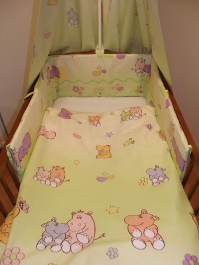 SDS Mantinel do postieľky Hrošíci zelená 195/28 cm Bavlnený mantinel do postieľky Hrošíci zelená je ideálny doplnok pre novorodencov, aby sa deti v postieľke nebúchali do hlavičky a zároveň mali na čo pozerať. Rozmery: Výška 28 cm, dĺžka 195 cm. Mantinel Hrošík sa upevňuje na postieľku pomocou šnúrok, ktoré sú z rovnakej látky. Mantinel je vhodný pre postieľky so šírkou 60 a 70 cm. Mantinel je vyrobený zo 100% bavlny, výplň 100% polyesterové rúno 200gr/m2. Je možné objednať aj iný rozmer mantinelu, dodacia doba cca 5-10 dní. V rovnakom motíve Hrošíci zelená nájdete aj obliečky a nebesá.