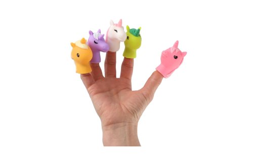 Deti si s prstovými jednorožcami môžu zahrať maňuškové divadlo. Súprava obsahuje 5 ks gumových jednorožcov. Rozmer balenia: 16,5 x 20 cm Vhodné od 3 rokov