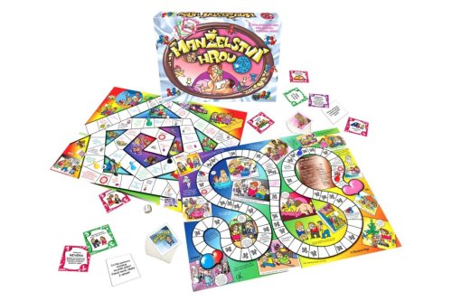 Manželstvo hrou - Spoločenská hra pre dospelých. Určená pre dvojicu či už v manželskom zväzku, alebo pre tých, čo do neho práve vstupujú, ... prípadne potom pre tých váhajúcich. V hre sa stretnete s celým spektrom známych životných situácií, problémov a kríz, ktoré môžu aj v tom vašom vzťahu niekedy nastať. Zábavnou formou sa tak môžete poučiť a náležite pripraviť. Prehrešky proti pravidlám spolužitia hodnotí a „oceňuje“ prvýkrát v histórii MANŽELSKÝ BODOVÝ SYSTÉM. Ideálne ako originálny, netradičný svadobný dar! Hra je pre dvoch hráčov - muža a ženu. Postupuje sa herným plánom smerom štart-cieľ. Hráči cestou berú katry, plnia zaujímavé úlohy. Časť kariet je súčasť bodového systému. Pokiaľ hráč prekročí hranicu 12 bodov, prichádza sankcia! Kto prvý bez úhony dorazí do cieľa, pochopiteľne vyhráva. Pre väčšiu motiváciu je zavedená špeciálna cena pre víťazov. Svokra to zariadi - rodinná hra pre 2 - 8 hráčov. Okrem manželskej dvojice sa môžu zapojiť nielen ďalší rodinní príslušníci ako svokra, švagor, potomkovia, ale aj kamaráti a známi. Hra je poučne zábavná. Užijete si v nej srandu aj napätie. Cestou na hráča čaká množstvo otázok, úloh a hádaniek. Nie vždy rozhoduje "správna" odpoveď. Záleží, ako pohotovo, vtipne as nadhľadom si kto poradí. Pre väčšiu motiváciu je tu opäť špeciálna cena pre víťaza.