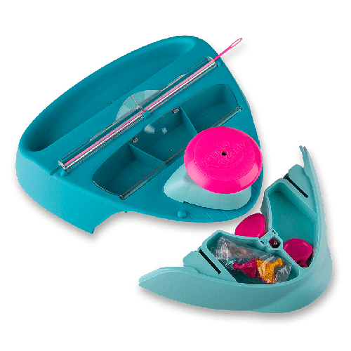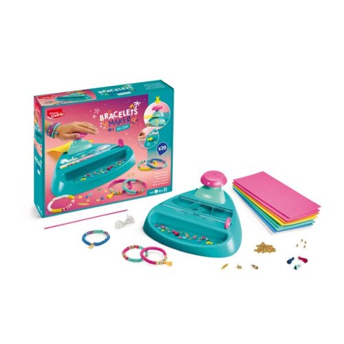 Sada obsahuje:, * špeciálny stroj na výrobu korálok, * množstvo doplnkov potrebných na výrobu minimálne 20 ks originálnych náramkov - časť doplnkov je v šuplíku, ktorý je umiestnený pod razidlom.