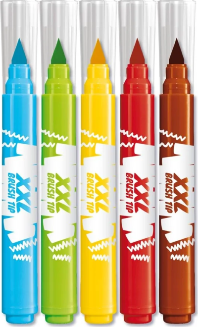 Súprava farebných fixiek Maped Color'Peps XXL Brush s extra silným hrotom. Ideálne na vyfarbenie veľkých plôch. Ľahko vyprateľný a umývateľný atrament. Žiarivé farby. Hrot odolný proti zatlačeniu či poškodeniu, účinný uzáver. Dlhá životnosť. Prednosti farebných fixiek Maped ColorPeps: