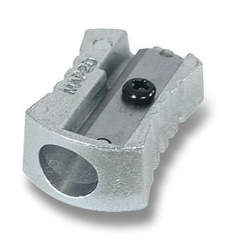 Kovové strúhadlo s 1 otvorom bez odpadovej nádobky. Veľkosť výrobku je cca 3 x 2 x 1,5 cm.