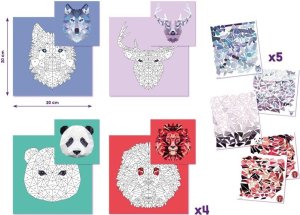 Kreatívna sada na vytváranie nádherných origami portrétov zvierat pomocou technikyčíslovaných nálepiek. Škálovateľné = 4 karty pre 4 úrovne obtiažnosti.