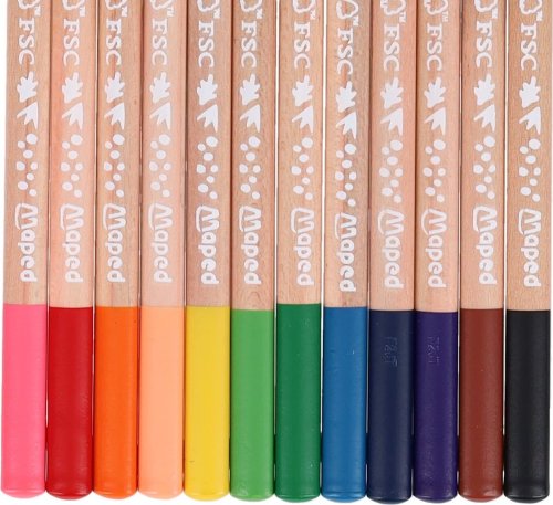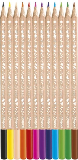 Kvalitné drevené pastelky Maped Smiling Planet so zdobeným telom a lakovanou špičkou. Pastelky majú trojhranné telo a mäkkú, odolnú tuha. Vyrobené zo 100% certifikovaného FSC dreva.