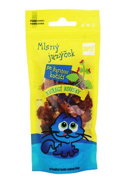 100% prírodný produkt, vysoký obsah bielkovín, s vôňou catnipu (šanty mačacie), pre mačky všetkých plemien, vyrobené v Českej republike.