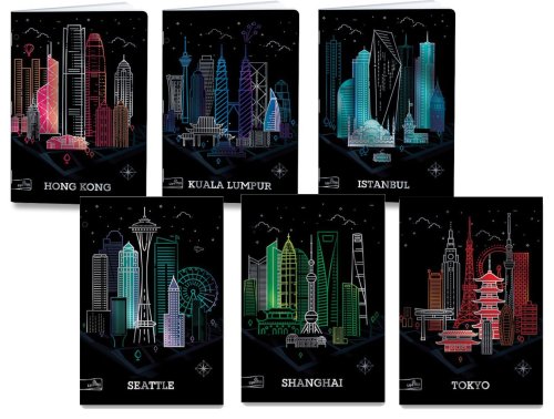 Zošit so šitou väzbou veľkosti A4 s motívom svetových metropol. Obal má plastický povrch s metalickými efektmi. Zošit je kompatibilný s mobilnou aplikáciou SmartLines, vďaka ktorej môžete so svojimi poznámkami pracovať v elektronickej podobe. Zošit má 40 linajkových listov. Šírka linky je 9 mm. Fotografie sú iba ilustratívne, zošit dodávame podľa skladových zásob.