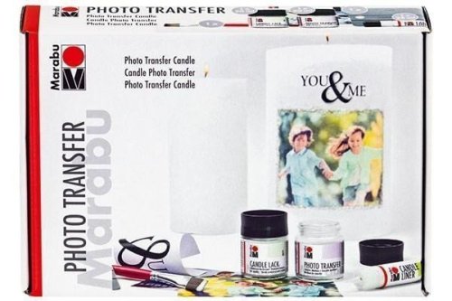 Transparentné médium na vodnej báze na prenos papierových výtlačkov (laserová tlač) na sviečky alebo voskové dosky. Lakovaný povrch musí byť čistý a suchý. Odporúčame zapaľovať sviečky s minimálnym priemerom 6 cm. Ideálne pre osobné fotografické darčeky k narodeninám, svadbe alebo inej udalosti. S priloženou sviečkovou fóliou Marabu v metalicko-striebornej farbe môžete sviečky vyrobiť ešte jedinečnejšie vďaka dekoráciám. Ďalšie informácie, mnoho tipov, trikov a nápadov nájdete v našej priloženej brožúre. Obsah: 1 x Photo Transfer medium 50 ml, 1 x Candle Lack sviečkový lak 50 ml, 1 x Candle Liner 25 ml (Metallic-silver 782), 1 x štetec Marabu Decoration & Hobby veľkosť 16 (rukoväte štetca z FSC® certifikované Drevo) , 1 x brožúra