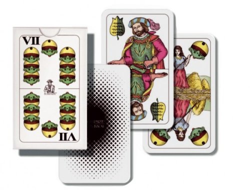 Klasická kartová hra. 32 listov, dvojhlavé. V papierovej krabičke.