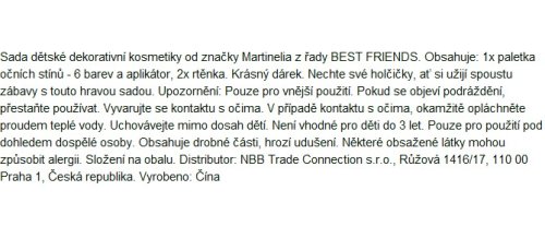 MARTINELIA My best friends Make up sada. Obsahuje: 1x paletka očných tieňov - 6 farieb a aplikátor, 2x rúž.