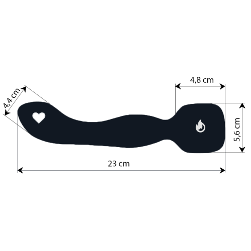 Rozmery: celková dĺžka hlavice: 23 cm dĺžka vibračnej hlavy: 4,8 cm. priemer vibračnej hlavy: 5,6 cm. maximálny priemer vibrátora: 4,4 cm hmotnosť celej pomôcky: 218 g
