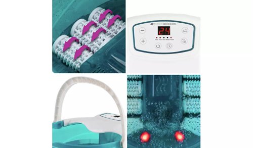 Oživte unavené nohy s luxusnou masážnou vaňou, ktorá obsahuje všetko, čo potrebujete na upokojenie chodidiel. Šesť motorizovaných masážnych valčekov stimuluje akupresúrne body a upokojujúci bublinkový kúpeľ jemne hnete nohy. Je možné jednoducho pridať bylinky/kvety alebo esenciálne oleje.