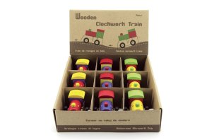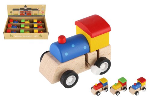 Roztomilá drevená mašinka o veľkosti cca 7 cm je krásny darček pre všetkých, ktorí majú radi vláčiky. Mašinka má pohon na kľúčik. Vhodné od 3 rokov.