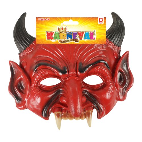 Gumová maska s motívom desivého čerta nesmie chýbať v tvojej karnevalovej zbierke! Maska je vhodná na Halloween párty, vianočnú besiedku aj karneval. Maska je pre ľahké pripevnenie opatrená gumičkou.