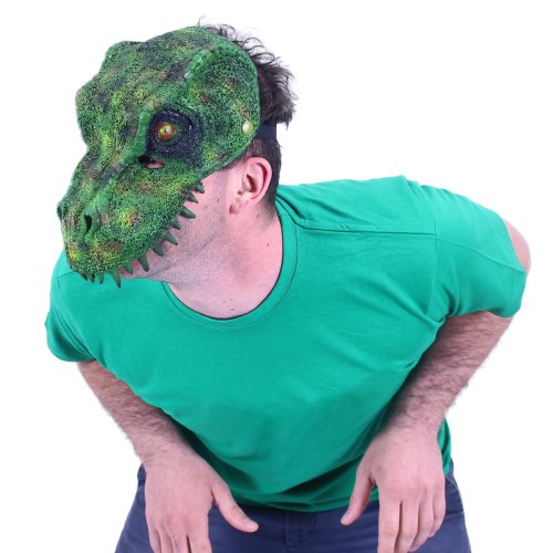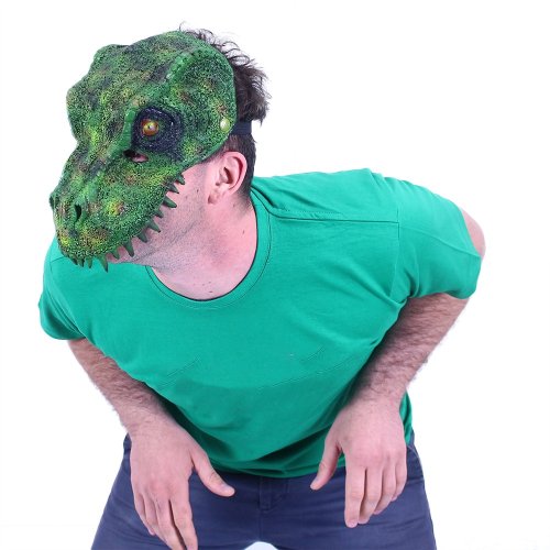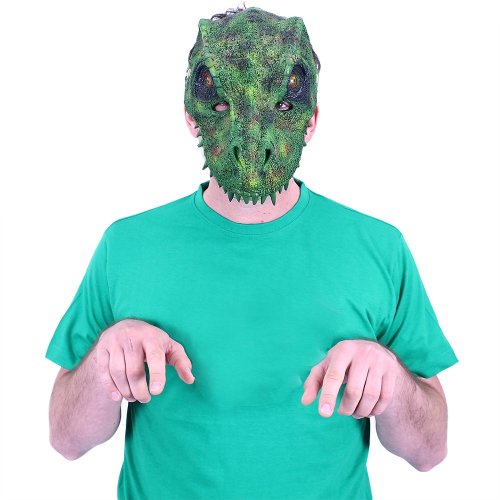 Desivá maska dinosaura v zelenej farbe je parádnym doplnkom ku kostýmu. Gumovú masku je možné pripevniť na gumičku. Vystraš svojich kamarátov touto hrozivou maskou a zaži veľa zábavy.