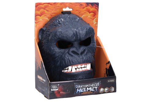 Maska gorila so zvukovými efektmi – český obal. Rozmery 17,2x12x24,5 cm. Pohybom hlavy sa otvára čeľusť, aktivuje sa rev. Zvukové efekty. 3xAG13 batérie súčasťou.