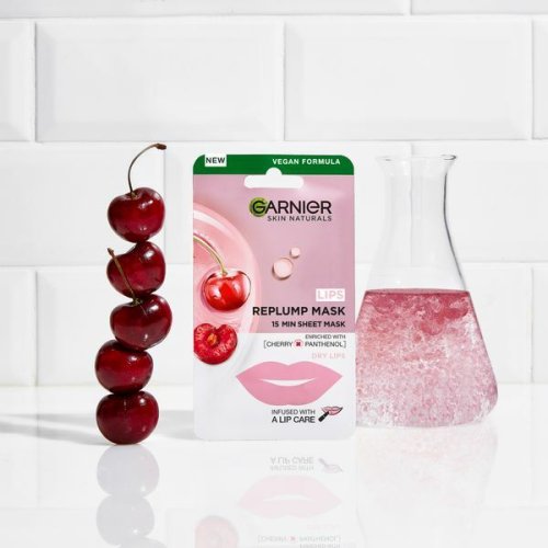 Vyplňujúca textilná maska na pery s výťažkom z čerešne a panthenolom. Pre vyplnené, hydratované a vyhladené pery už za 15 minút.