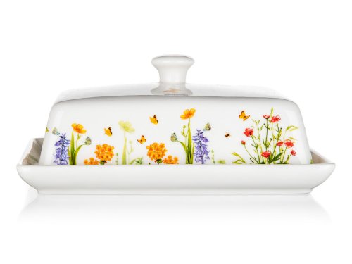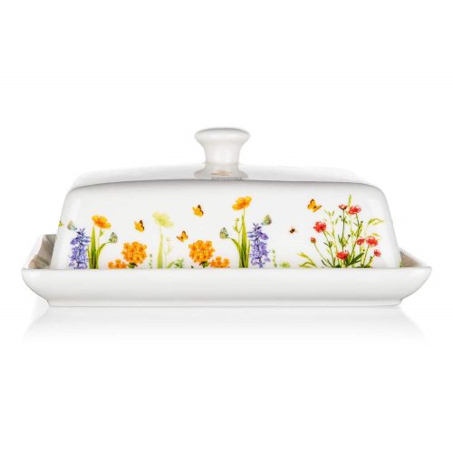 Maslenka MEADOW, s krásnym kvetinovým vzorom, sa hodí na uchovanie masla v chladničke aj servírovanie masla pri všedných a sviatočných príležitostiach. Maslenka je vhodná na ručné umývanie. S týmto dekorom si môžete zakúpiť aj ďalšie produkty a vytvoriť si tak krásnu servírovaciu sadu.