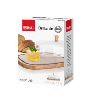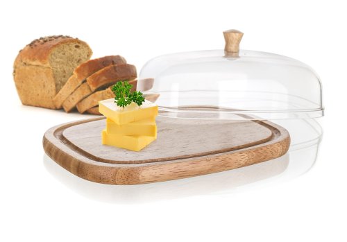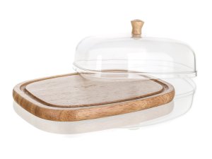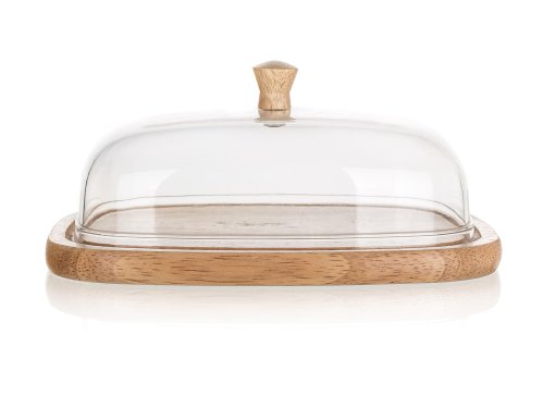 Dóza na maslo a syry BRILLANTE. Podnos s ryhou z kvalitného gumovníkového dreva, poklop acryl s dreveným knobom. Syr uzavretý poklopom na podnose zostane oveľa dlhšie čerstvý a neosychá.