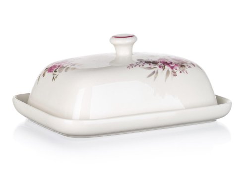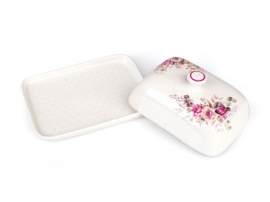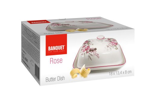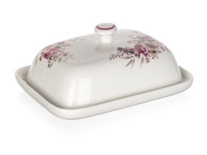 Maslienka ROSE, s krásnym kvetinovým vzorom, sa hodí na uchovanie masla v chladničke aj servírovanie masla pri všedných a sviatočných príležitostiach. Maslenka je vhodná na ručné umývanie. S týmto dekorom si môžete zakúpiť aj ďalšie produkty a vytvoriť si tak krásnu servírovaciu sadu.
