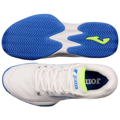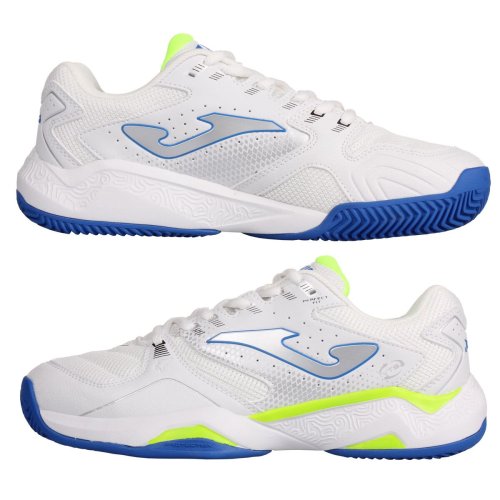 Tenisové topánky JOMA Master 1000 Men 2432 sú určené pre začínajúcich a rekreačných hráčov, ktorí trénujú na antukových kurtoch. Táto obuv poskytuje výnimočne dobré odpruženie, ochranu a pohodlie. Topánky sú vyrobené prevažne z pružného a odolného syntetického materiálu PU s perforáciou VTS umiestnenou na strategických miestach tak, aby topánky poskytovali čo najlepšie odvetrávanie. Časť členku a jazyka je z polstrovaného nylonu a spolu so šnurovaním PERFECT FIT tak topánky ponúkajú čo najlepšie prispôsobenie sa nohe. Medzipodrážka je vyrobená z ľahkého, pružného phylonu na tlmenie nárazov, so zvýšenou výškou na bočnej strane pomocou technológie PROTECTION. Podrážka z antukovej gumy DURABILITY je určená na hru na antukových alebo padelových kurtoch. Vyznačuje sa vynikajúcou trakciou pre čo najrýchlejší pohyb počas hry.
