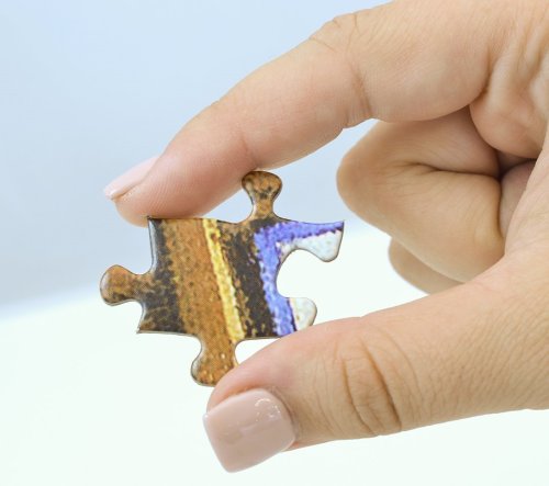 Súčasťou balenia je stojan pre postavenie krabičky pri skladaní puzzle. Vyrobené z recyklovaného a recyklovateľného materiálu. Kvalitné silné dieliky do seba tesne zapadajú a držia.