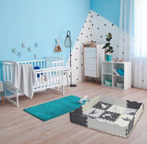 bezpečná a mäkká podložka je umývateľná penové puzzle tlmí hluk a izoluje od chladu ideálny ako hrací koberec nielen do detských izieb puzzle má vrúbkovaný povrch hrúbka penového puzzle je 0,9 cm balenie obsahuje 9 štvorcových dielov, 12 okrajových dielov a 4 rohové je 28 x 28 cm (merané od zuba po výrez)