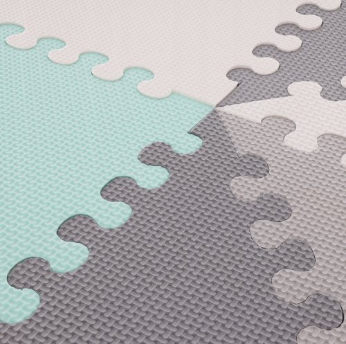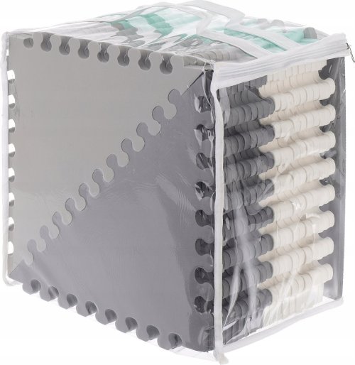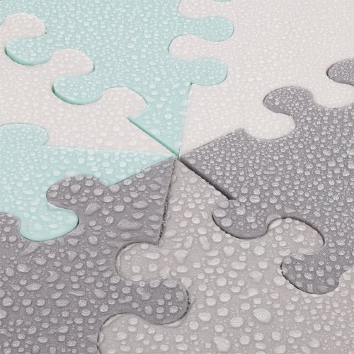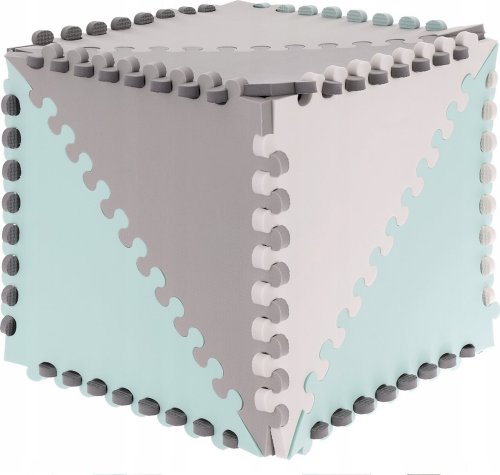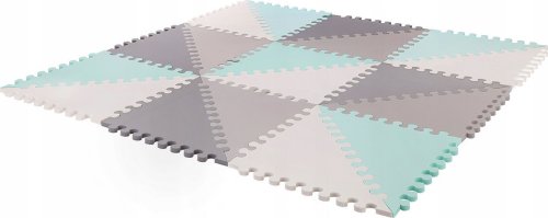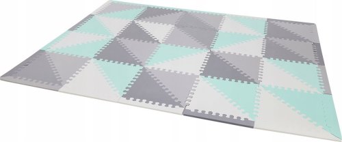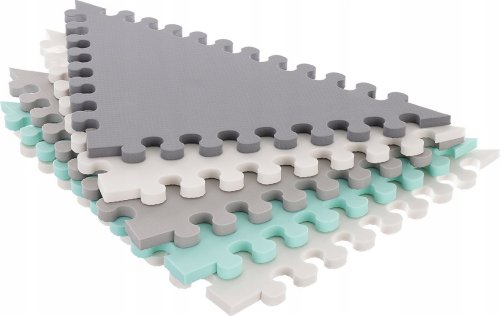 Penové puzzle so šedými a zelenými dielikmi s unikátnou raznicou, kedy zámky jednotlivých dielikov pripomínajú zips. Každý štvorcový dielik je tvorený z dvoch trojuholníkových častí.