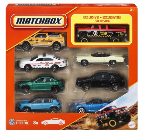 Prežite realistické dobrodružstvá s balením 8 vozidiel Matchbox™. Každé auto alebo truck v mierke 1:64 má verné detaily, ktoré deti rozpoznajú zo skutočného sveta a ktoré zberatelia milujú. V každom balení je jedno jedinečné vozidlo. Každé balenie sa predáva samostatne podľa aktuálnej ponuky.