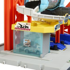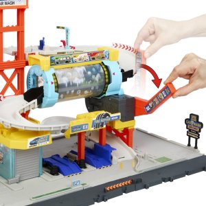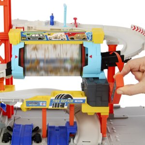 S herným setom Matchbox Super auto centrum sa deti ponoria do sveta dobrodružstva a fantázie! Táto viacpodlažná umývačka ponúka množstvo akcie – začína sa v stanici technickej kontroly s funkčným výťahom a zónou na výmenu pneumatík. Na hornom poschodí riadi prevádzku pohyblivý obsluhujúci pracovník a autá posiela do vírivej umývačky. Stačí zatiahnuť za páku a roztočiť tunel, ktorý náhodne ukáže jeden z troch stavov: špinavé, namydlené alebo čisté. Keď padne "čisté", autíčko sviští dole na výjazd. Súčasťou setu je angličák Corvette v mierke 1:64 a odťahovka - ideálna pre ešte viac zábavných príbehov. Farby a vzhľad výrobku sa môžu líšiť.