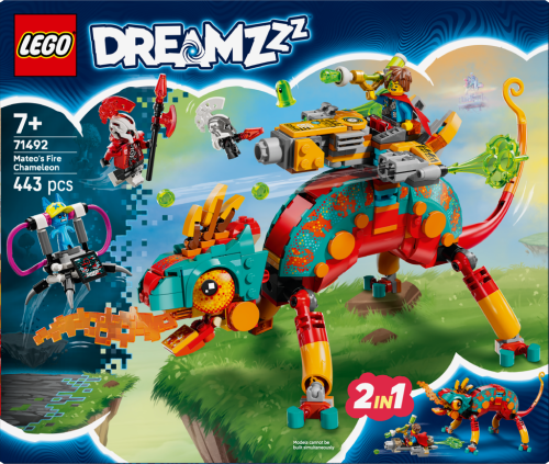 Podporte kreativitu detí so stavebnicou LEGO® DREAMZzz Mateo a jeho ohnivý chameleón pre chlapcov a dievčatá od 7 rokov, ktorá prináša hneď 2 možnosti zostavenia. minirobotom Stavebnica obsahuje modulárne motory, ktoré sú kompatibilné s ďalšími stavebnicami z radu LEGO® DREAMZzz 2025 (predávajú sa samostatne) Hrdina Mateo a zloduch Zero a figúrka Logana, Kyberveci a Z-Fleka vdýchnu príbehu život a inšpirujú ku kreatívnemu hraniu rolí