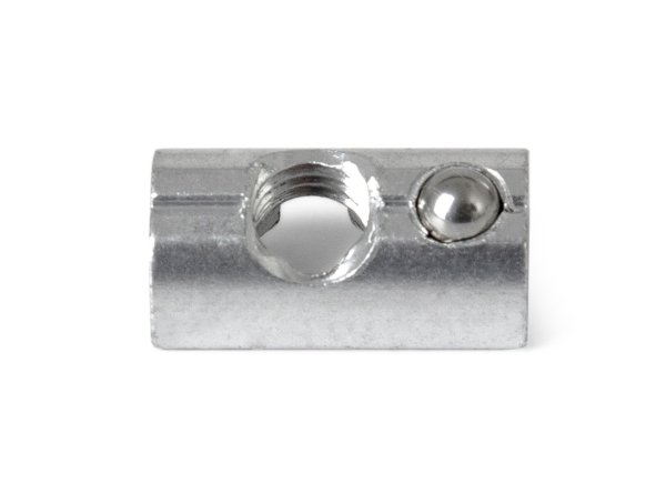 Hliníková matica s nerezovou pružnou guličkou je určená na upevnenie krajných a stredových úchytov do drážky montážneho profilu.