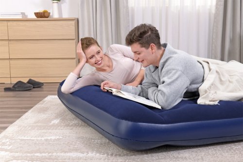Matrac je vyrobený z pevného a odolného vinylu a má zabudovanú nožnú pumpu. Horná časť je potiahnutá mäkkým materiálom, na spríjemnenie relaxácie. Odolná konštrukcia a pružnosť matraca je zaručená vďaka nafukovaciemu rámu typu coil-beam, čo je spojenie hornej a dolnej vrstvy matraca pomocou komôr. Matrac je veľmi pohodlný, je ideálny na záhradu, na kempovanie v stane. V domácnosti ju môžete využiť ako náhradnú posteľ pre hostí. Súčasťou balenia je opravná záplata.